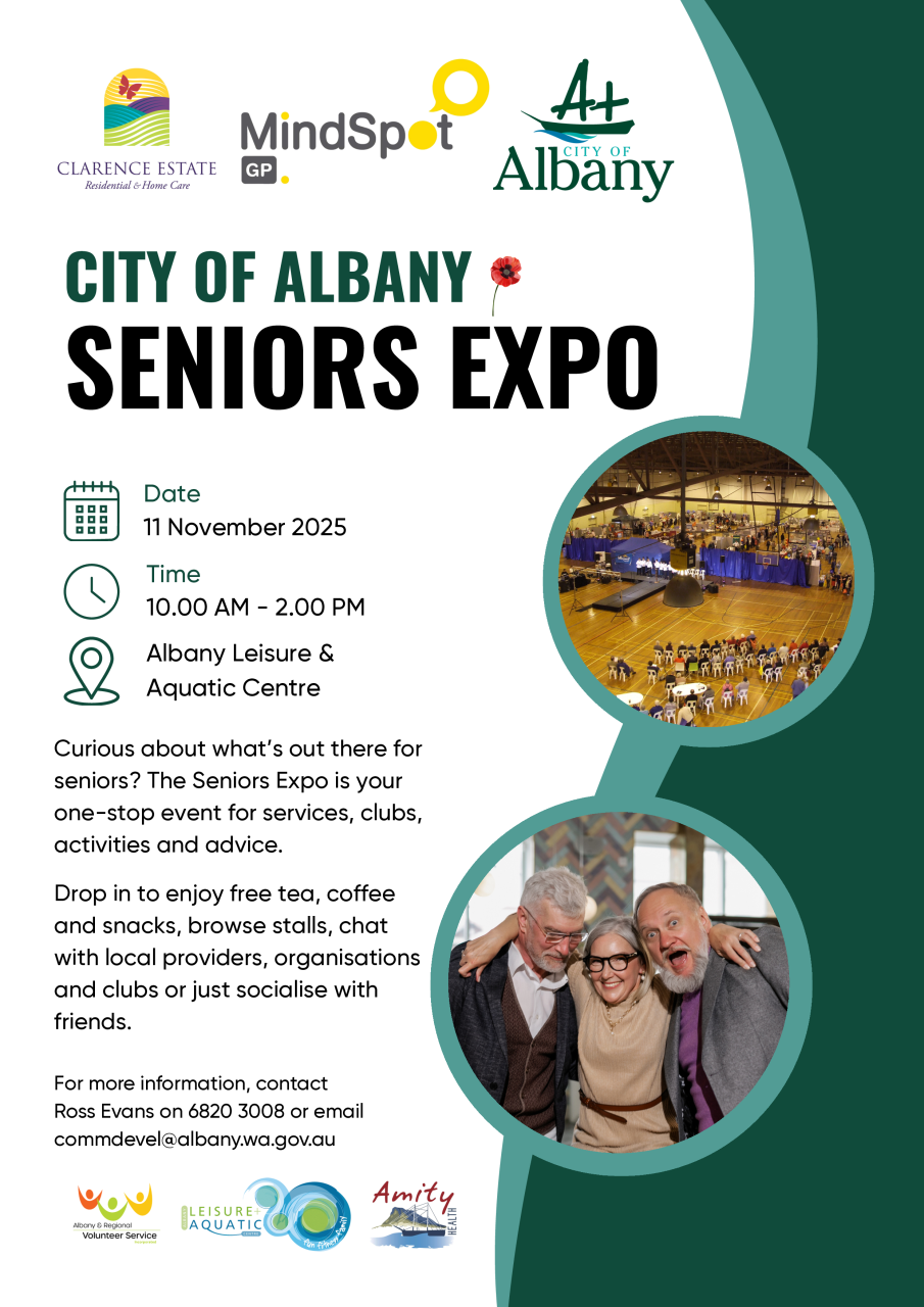 Retiring soon, already retired, or just curious about what’s out there for seniors in the Great Southern? The Seniors Expo is your one-stop shop for services, clubs, groups, activities, and advice. Drop in at any time between 10am and 2 pm to enjoy free tea, coffee, and snacks, browse stalls, chat with local providers, organisations, and clubs or simply come along to socialise with friends.