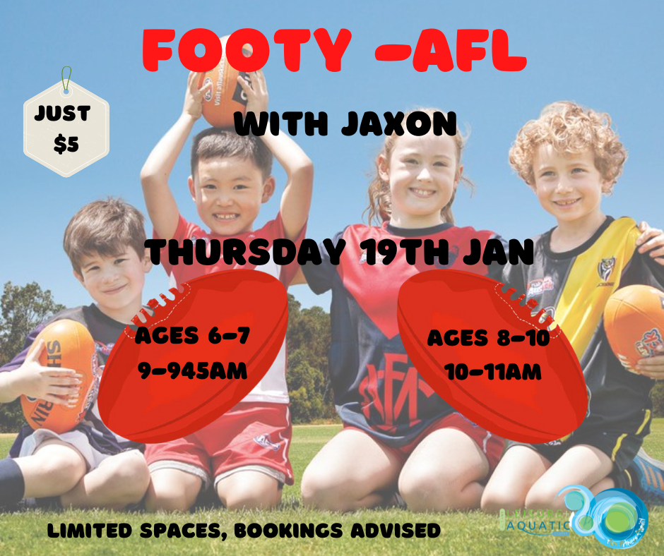 Join Jaxon from the West Australian Football Commission on Monday, 19 January for some fun-filled footy sessions.