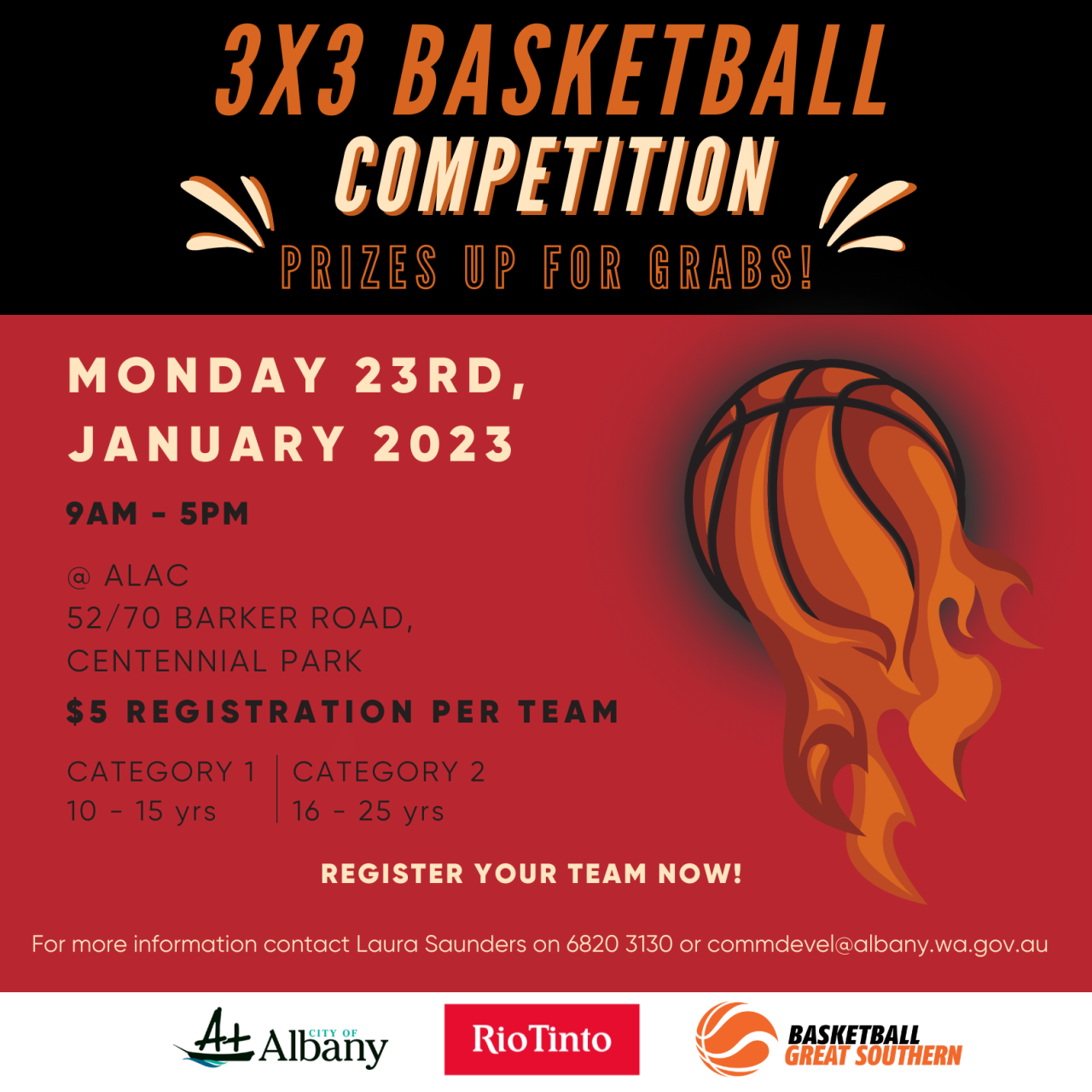 The "3x3 Basketball Competition" will be running at ALAC from 9am to 5pm on Monday, 23 January and is open for registrations in two age categories: